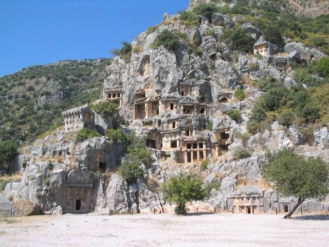 Не менее интересным и впечатляющим покажется Вам и другой памятник древней цивилизации– скальный некрополь Миры– вырубленные в скалах древние гробницы и римский амфитеатр, архитектура которого и красота скульптурных барельефов поражают своим величием.