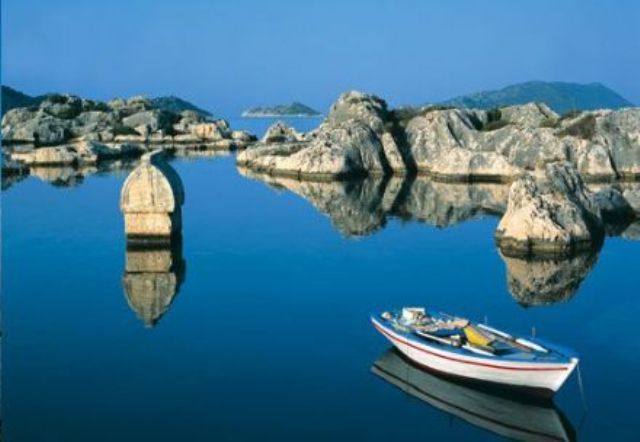 После обеда в ресторане Вы совершите морскую прогулку на яхте к острову Кекова, часть которого после землятресения оказалась под водой. Благодаря прозрачности морской воды, Вы сможетет увидеть развалины древнего города и почти призрачное видение – ликийский саркофаг.