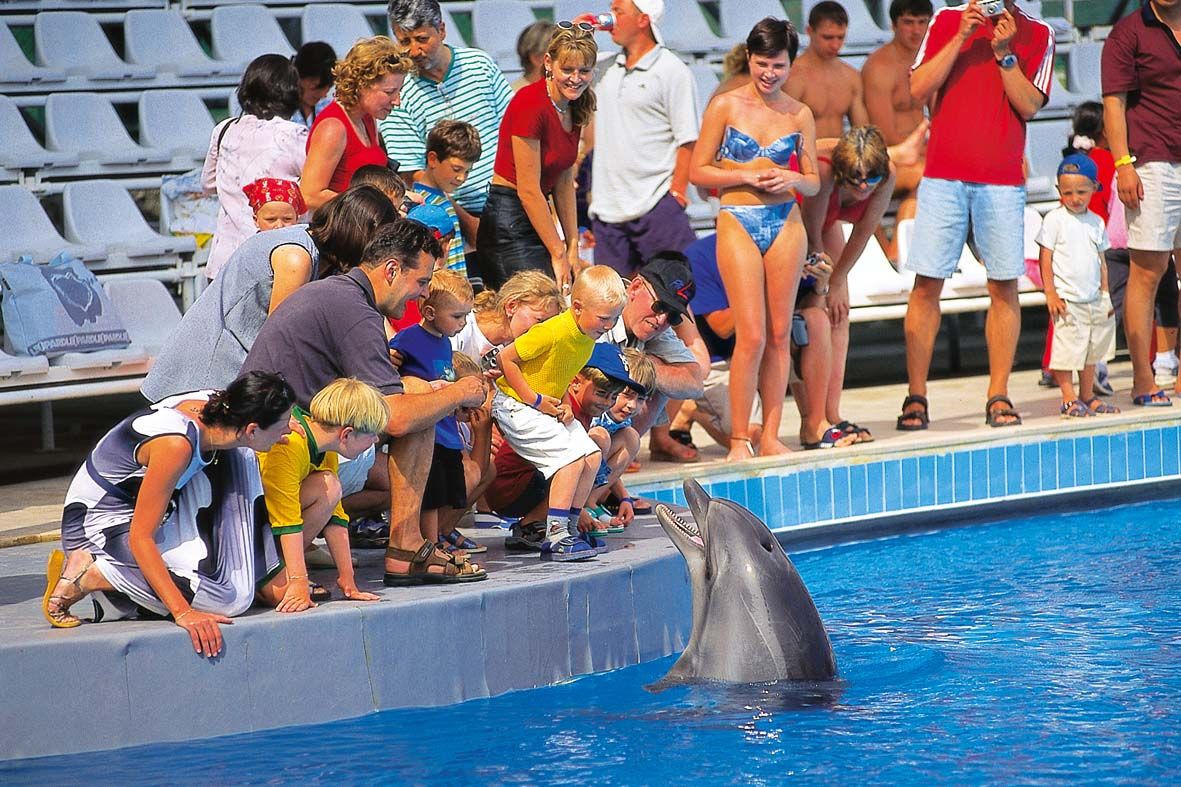 В дельфинарии выступают дельфины, морские котики и белуга, которые виртуозно исполняют различные фигуры «высшего пилотажа», очень тесно общаются со зрителями под присмотром инструкторов. При этом дельфины даже рисуют картины, которые можно купить. Кроме того, с этими представителями живой природы можно не только сфотографироваться, но и даже поплавать.